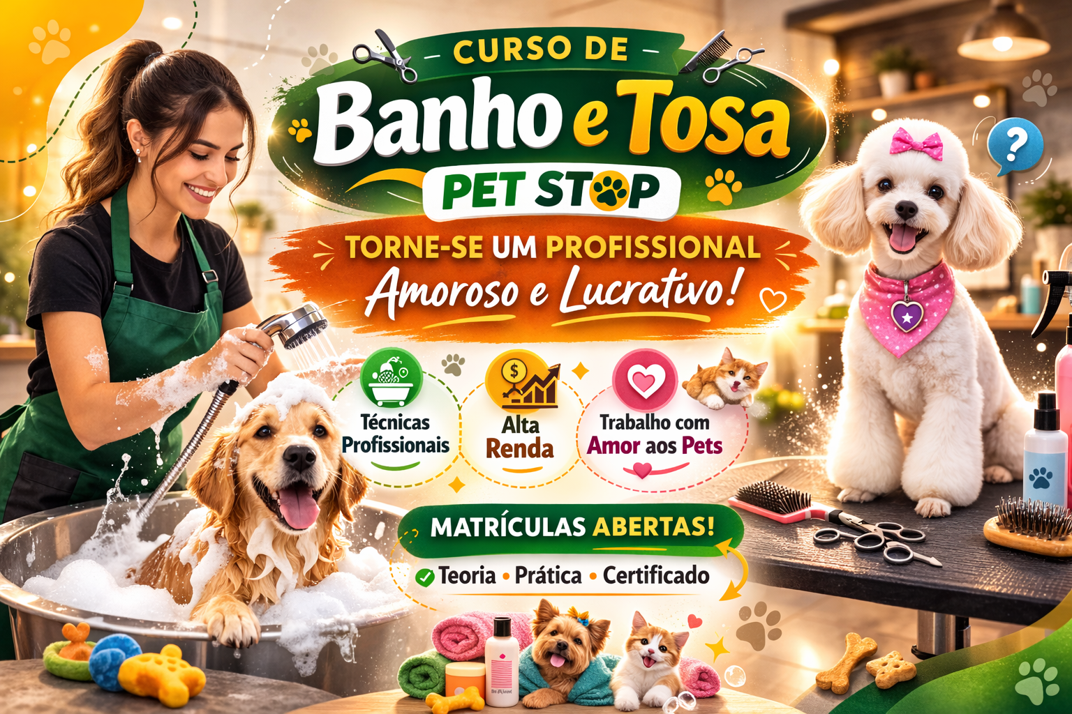 - Empregabilidade rápida em pet shops e clínicas.